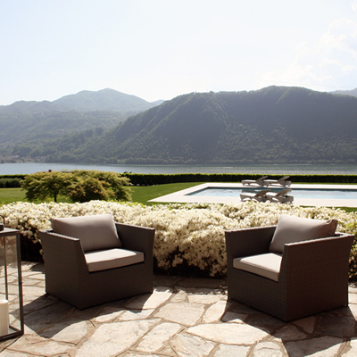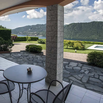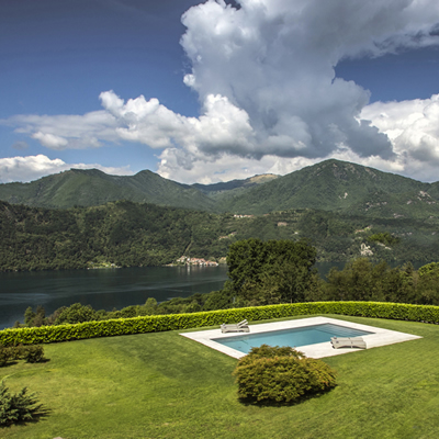 Dalla terrazza e dal giardino, rilassandoti in piscina, puoi ammirare un'incantevole vista del lago e delle montagne che lo circondano.
